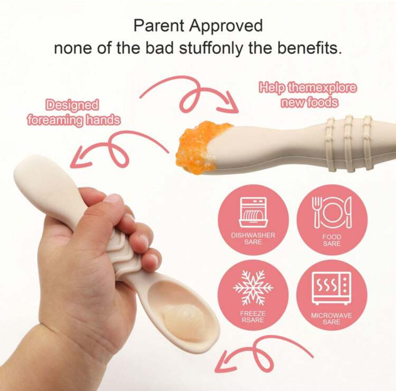 - **Ergonomisches Design:** Die Löffel sind so gestaltet, dass sie leicht von kleinen Händen gehalten werden können. Der Griff bietet zusätzlichen Halt und Kontrolle, was das Füttern erleichtert.