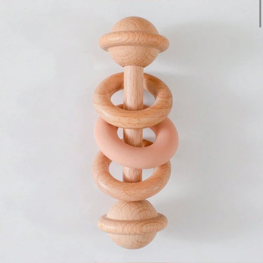 Bunte Holz-Rassel mit Silikon-Beißringen, Holzspielzeug für Babys