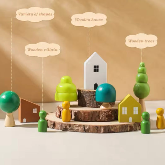 Montessori Sinnes Spielzeug Stapeln Spielzeug Für Baby Wald Häuser Replik Holz