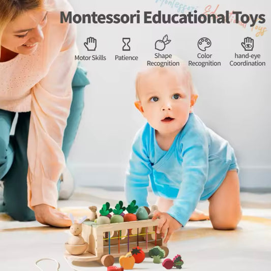 Montessori Spielzeug Holz Rübe Auto Stretch Seil Hand gezogen Auto Baby Karotte ziehen Spielzeug Form passende Spielzeug Eltern-Kind-Bildung